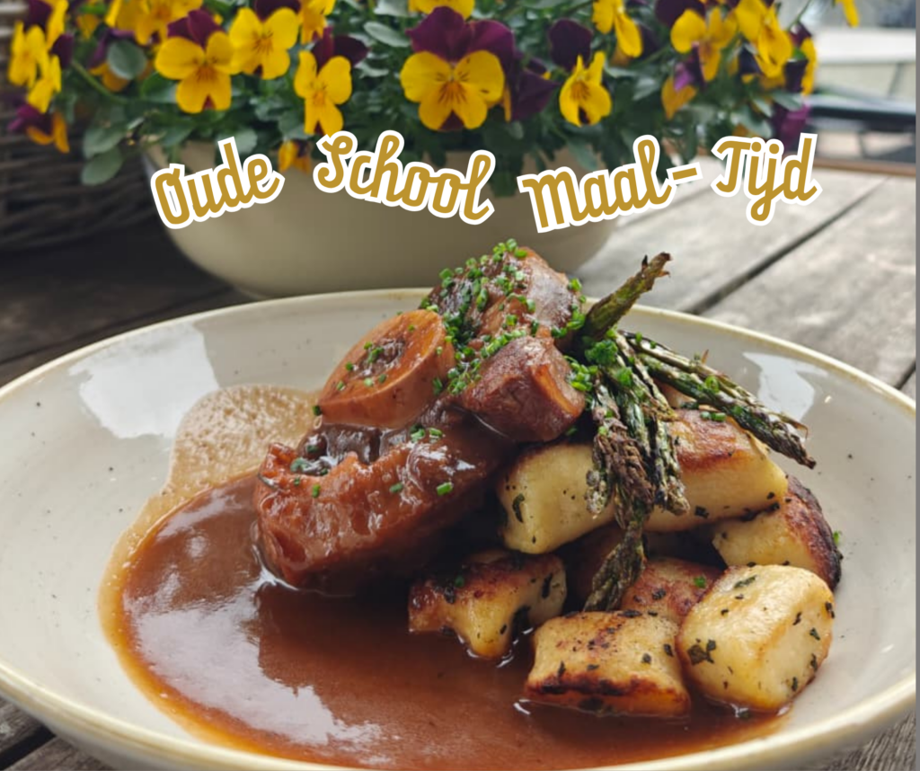 De Oude Schoolmaaltijd is iedere werkdag verkrijgbaar en kost altijd € 16,50. We werken echter met een beperkt aantal maaltijden per dag, dus voorkom teleurstelling en reserveer op tijd. Op = op!